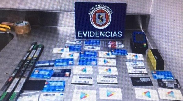 Além de vários recibos de envio de dinheiro e de saques de dinheiro em caixas eletrônicos, dois aparelhos de skimmers, e 96 cartões de crédito, débito e pré-pagos, segundo o site Porã News.