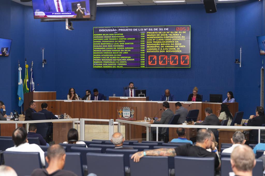 A sessão foi conduzida pelo presidente da Casa, vereador Tonhão, e contou com uma pauta extensa de votações. Entre os projetos aprovados em regime de urgência, também estão propostas que tratam de ajustes administrativos em legislações municipais e alterações no estatuto dos servidores públicos e da educação básica.
