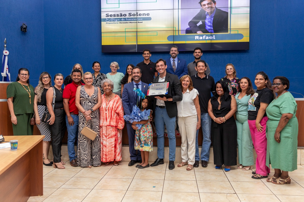 A solenidade também contou com a entrega de moção de congratulação ao Moto Clube Insanos, representado por Jeferson Domingues. Bazé concedeu ainda moções de reconhecimento a Ana Paula Santos Belmonte, fundadora do projeto Estrelinhas do Novo Oeste, e à empresa Rodoprima Transportes, representada por Luís Gustavo Rodrigues.