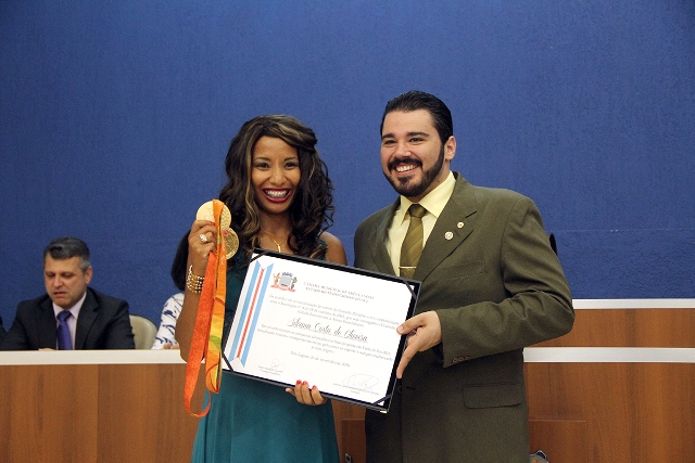 Na mesma solenidade, foi homenageada a atleta paralímpica, medalhista de ouro, a três-lagoense Silvania Costa de Oliveira, com a outorga de Título de Cidadã Benemérita, proposto pelo vereador Tonhão.