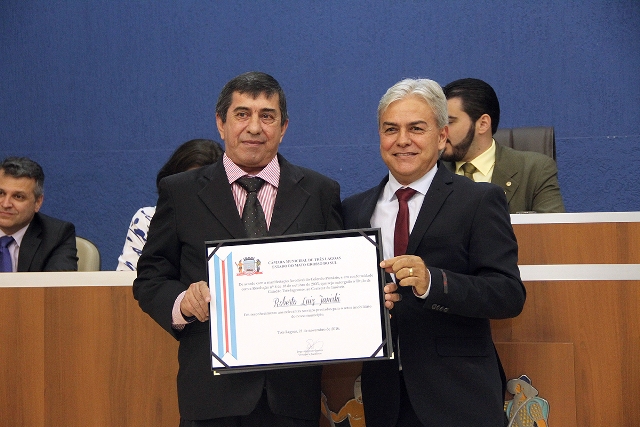 Foram homenageados, com a outorga de Título de Cidadão Três-lagoense, o comandante da 2ª Companhia de Infantaria do Exército Brasileiro, major Guilherme Bottrel Carvalho, e o corretor de imóveis, Roberto Luiz Janiski, há 33 anos residindo em Três Lagoas.