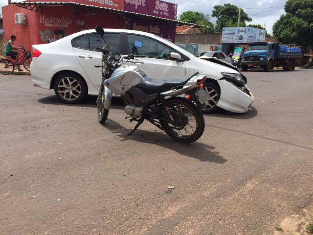 A câmera de monitoramento de uma residência localizada no bairro Santos Dumont II registrou na tarde desta terça-feira (16) o momento exato em que a condutora de um Honda City colidiu com uma Moto Yamaha Factor e arremessou os ocupantes do veículo.