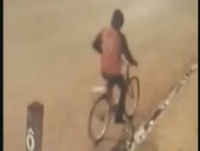 No vídeo, o homem, descrito como tendo cerca de 20 anos de idade, moreno, rosto arredondado, estatura média, magro, vestindo moletom azul com vermelho e calça jeans; aparece de bicicleta, cruzando com a vítima e logo em seguida mudando de direção para persegui-la.