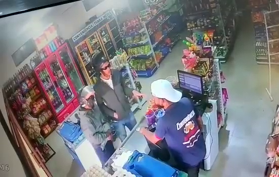 Câmeras de segurança registram criminosos roubando conveniência com faca