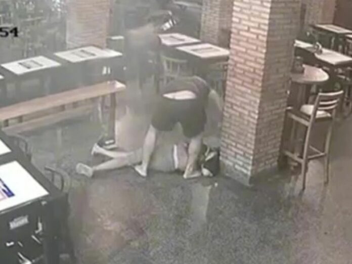 Imagens do sistema de câmeras de monitoramento mostram o instante em que o suspeito passa a agredir a vítima, que cai em frente a um automóvel. Em seguida, o agressor continua os ataques mesmo com a vítima já caída. Após a ação, o autor fugiu do local, abandonando um par de chinelos, e deixou o estacionamento em um veículo branco, aparentemente um VW/Gol.