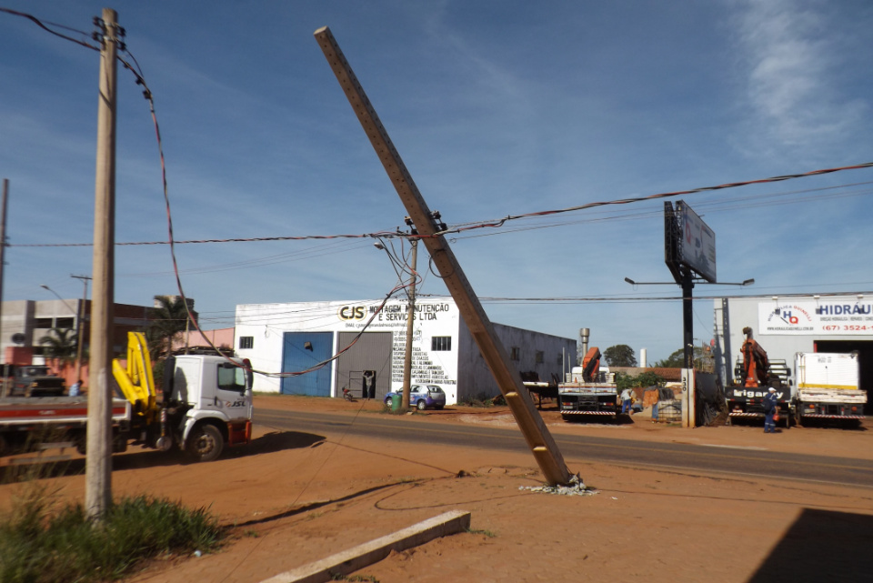 Uma equipe do Corpo de Bombeiros de Três Lagoas foi informada na manhã desta quinta-feira (08) sobre o risco de queda de um poste de concreto, que poderia cair e causar riscos aos transeuntes que passavam pela BR-262, na saída para a cidade de Brasilândia-MS.