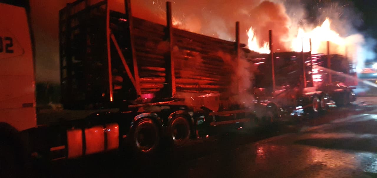 Mais um incêndio em veículo pesado foi registrado na BR-262, nas proximidades de Três Lagoas. Um caminhão carregado com toras de eucalipto pegou fogo no início da madrugada desta sexta-feira (24), na altura do km 25 da rodovia, assustando motoristas que passavam pelo trecho.