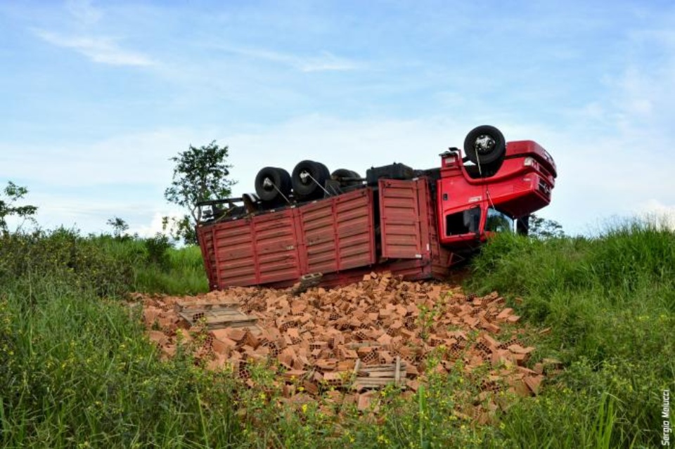 Na tarde desta terça-feira (16), um caminhão carregado com tijolos tombou na rodovia MS-395, no trecho que liga os municípios de Bataguassu (MS) e Brasilândia (MS). O motorista do caminhão se feriu levemente.