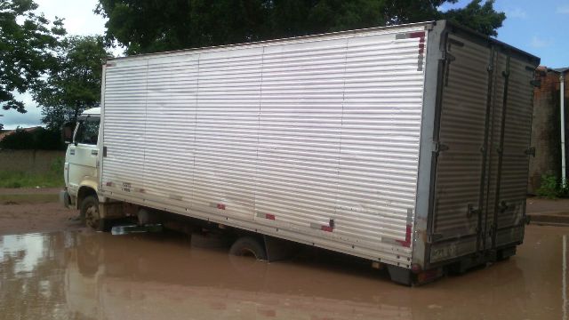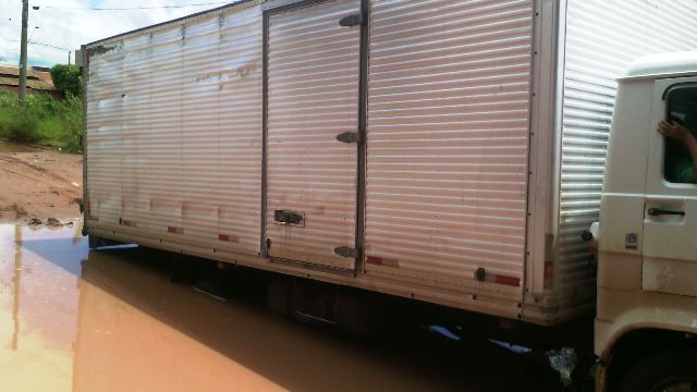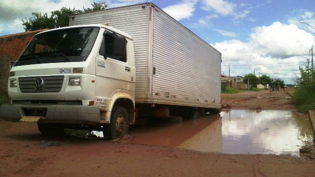 Nesta quinta-feira (03), nem mesmo um veículo de grande porte escapou das más condições da via. Um motorista ao tentar atravessar uma poça d’água com um caminhão Volkswagen, acabou afundando a parte traseira do veículo e não bastando todo o transtorno causado a ele, o trabalhador ainda terá que reembolsar uma nova placa dianteira do caminhão que foi danificada.