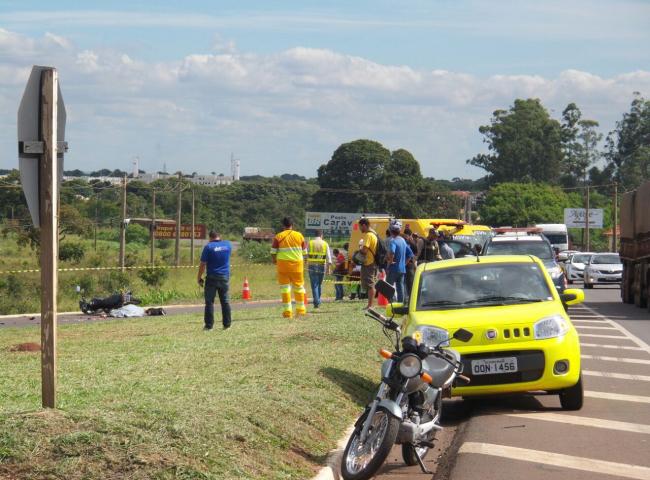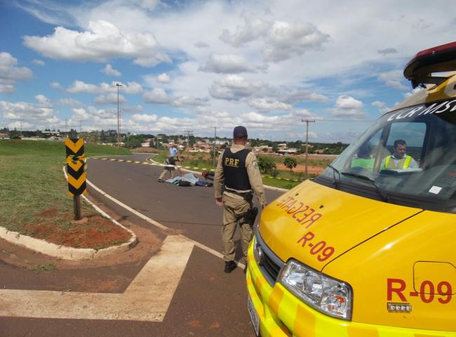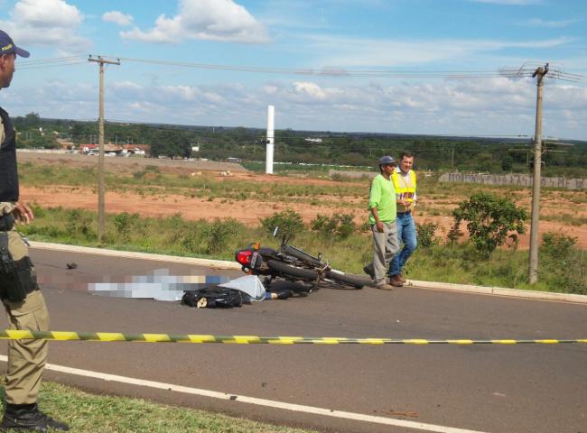 Caminhoneiro passa sobre motociclista na saída para Três Lagoas (MS) e foge do local