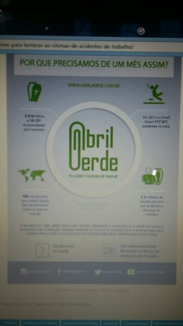 A Polícia Rodoviária Federal em parceria com o Ministério Público do Trabalho promoveu a Campanha Abril Verde que trata da saúde e segurança no trabalho. Os policiais lembraram os passageiros que este é um mês de reflexão para todos os trabalhadores do país, pois o dia 07/04 é o Dia Mundial da Saúde e o dia 28/04 é o Dia Internacional em Memória às Vítimas de Acidentes de Trabalho.