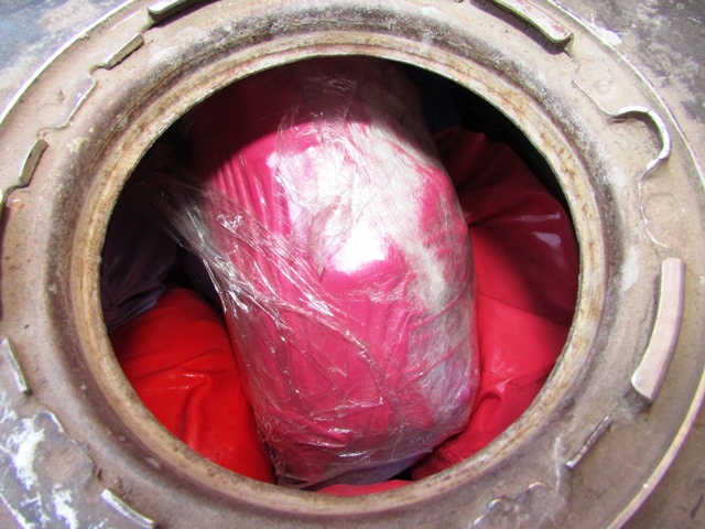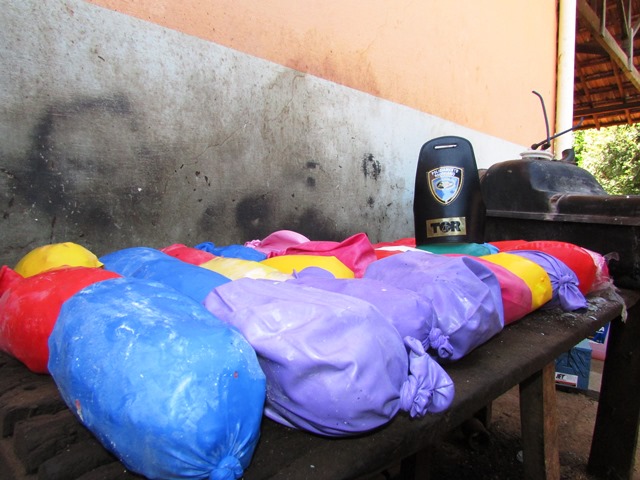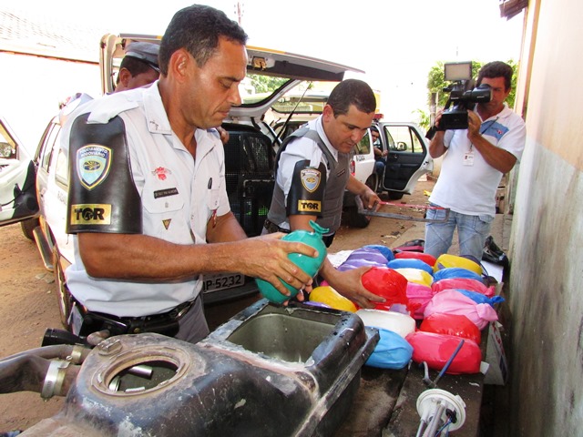 Os patrulheiros do TOR levaram a caminhonete até uma oficina de Castilho, onde o veículo foi parcialmente desmontado para a retirada das cápsulas de cocaína do tanque de combustível. A droga estava envolta em 28 bexigas ou balões de festa.
