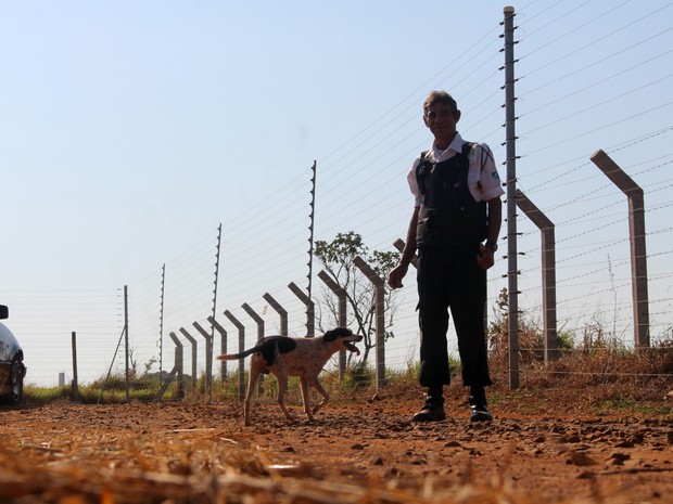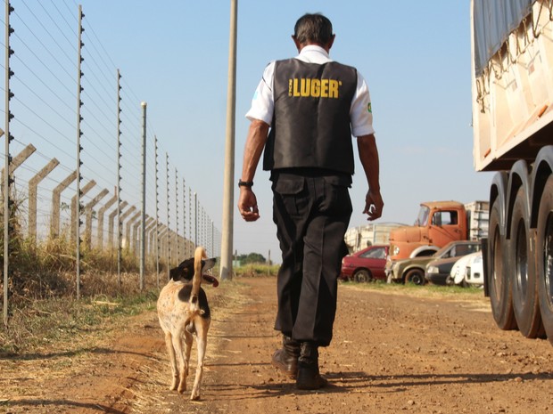 Vigilante do pátio virou amigo do cachorro e pensa em adotá-lo.
