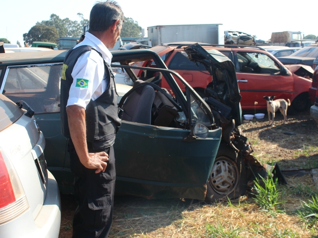 Carro está no pátio do Detran, em Campo Grande. Acidente foi MS-080.