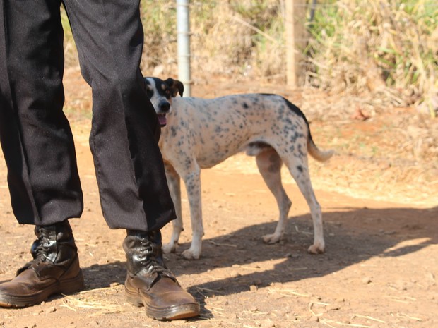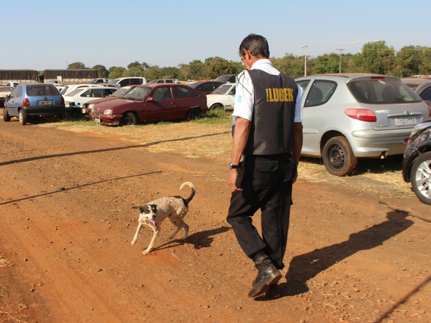 O G1 esteve no pátio do Detran nesta sexta-feira (15) e encontrou o cachorro que aparenta ser bastante desconfiado e tímido. Foi entre os carros recolhidos que Menino arranjou um novo companheiro, o vigilante David Guimarães Santos, de 56 anos.