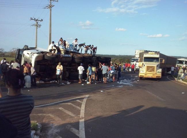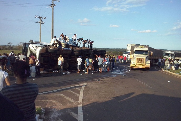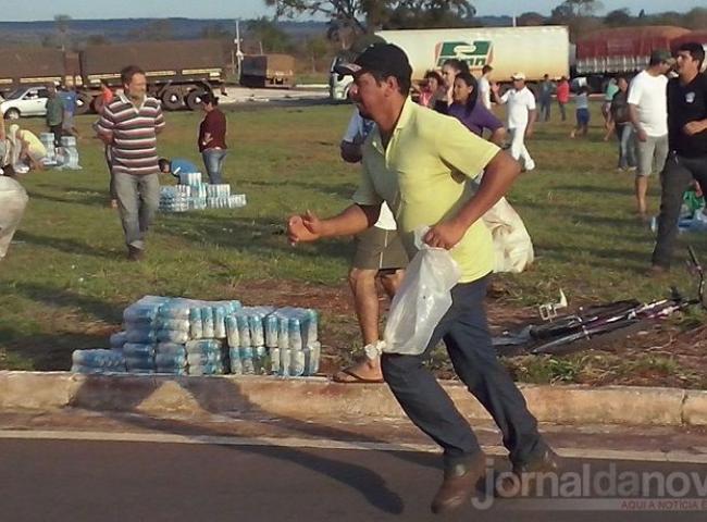 Uma carreta carregada de fardos de latas de cerveja foi saqueada na tarde de domingo (13), na Rodovia BR-267. O veículo tombou nas proximidades de Nova Andradina, a 297 quilômetros da Capital, e toda a carga foi levada por populares.