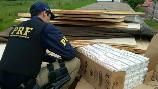 Pelo menos 25 mil pacotes de cigarros, de origem estrangeira, foram apreendidos pela Polícia Rodoviária Federal (PRF), ontem (1º), em Três Lagoas. A carga estava em um caminhão com placas de São Joaquim da Barra-SP. O motorista, de 32 anos, acabou preso em flagrante por contrabando.