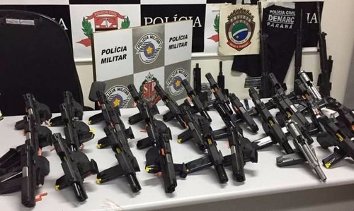 Carga de quase cinco toneladas de maconha e um arsenal com 31 pistolas e nove fuzis, além de 16 mil munições de vários calibres e acessórios para armas, que saíram da cidade de Amambaí, no Mato Grosso do Sul, foram apreendidos no interior de São Paulo ontem.