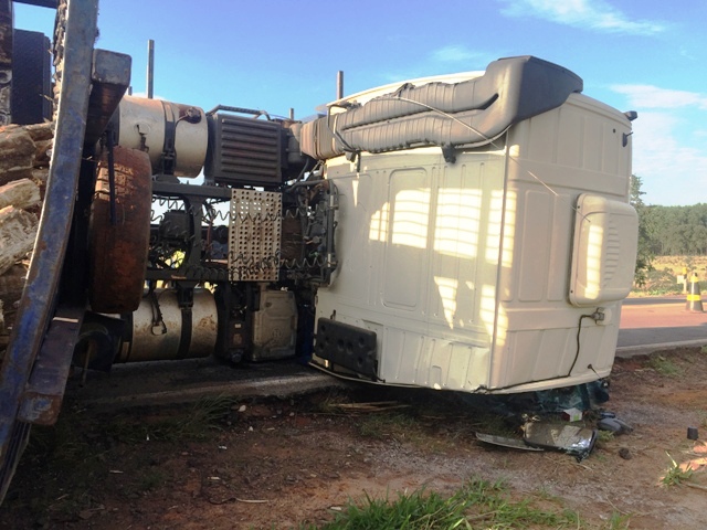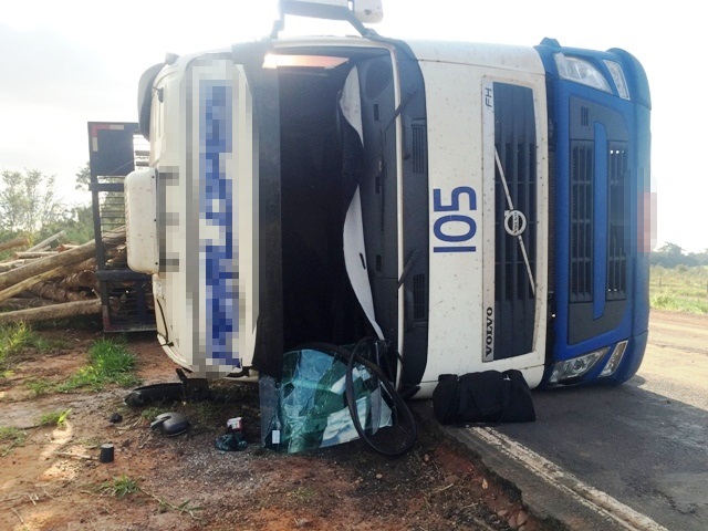 Carregado com mais de 70 toneladas de eucalipto, treminhão tomba na BR-262