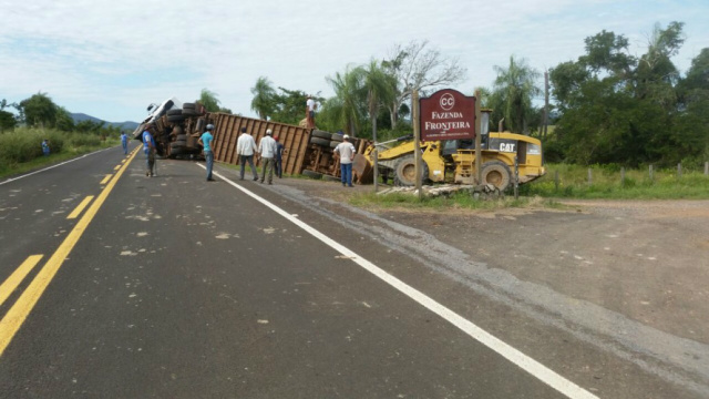 Carreta carregada com 40 cabeças de gado tombou na BR 267, na manhã de hoje (25), próximo a Porto Murtinho (MS). Vários animais que estavam sendo transportados morreram e muitos ficaram feridos, presos nas ferragens.