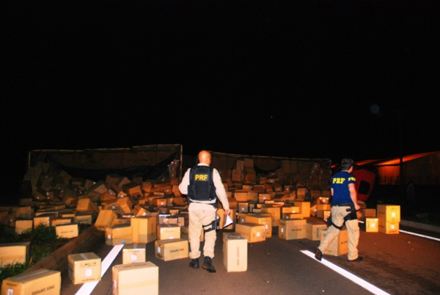 O acidente ocorreu por volta das 20h40, quando o motorista da cavalo mecânico, da marca Volvo, que seguia atrelado a uma carreta bi-trem, não teria percebido o inicio do canteiro central em meio a rodovia BR-267, na região do pólo industrial, e teria passado direto vindo a perder o controle do veículo e tombar a carreta em meio a rodovia, espalhando toda a carga em meio a pista de rolamentointerditando todo o trânsito. Para não gerar congestionamento, o trânsito foi desviado para uma avenida de acesso ao polo industrial, e que também da acesso a rodovia após o acidente, fazendo assim fluir o trânsito no local.