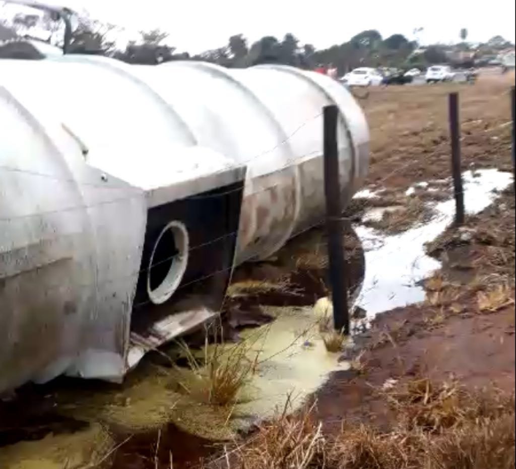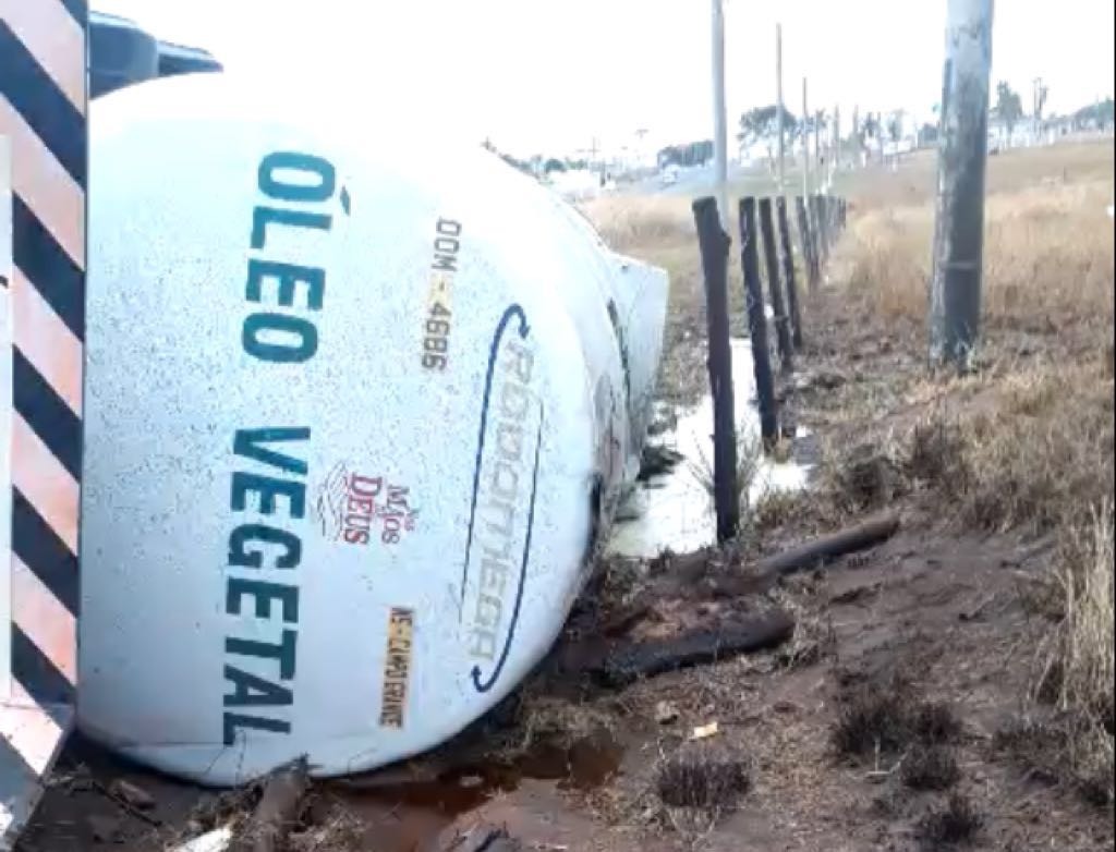 O veículo tombou, resultando no derramamento de quase 48 mil litros de óleo vegetal às margens da rodovia, causando poluição do solo e degradação de vegetação.