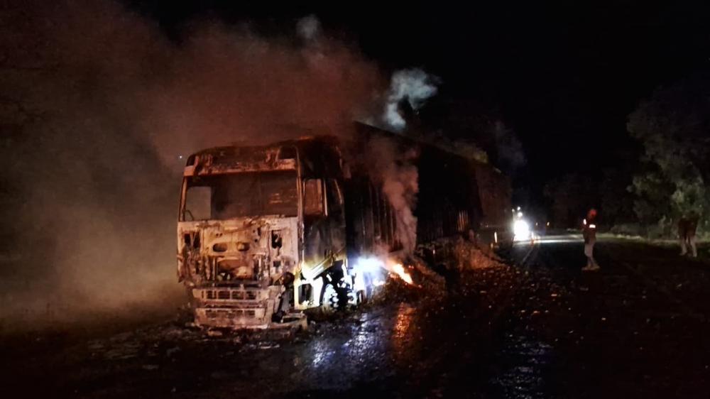De acordo com as informações iniciais, o incêndio teria sido provocado por uma falha elétrica no cavalo mecânico do caminhão. As chamas se espalharam rapidamente, consumindo completamente a carreta, que ficou totalmente destruída.