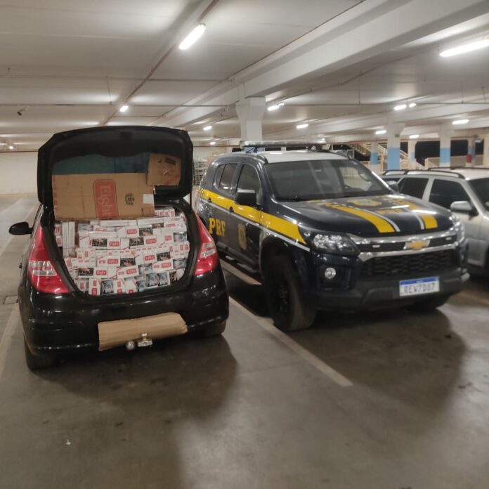 Carro abarrotado de cigarros contrabandeados é apreendido pela PRF em Três Lagoas