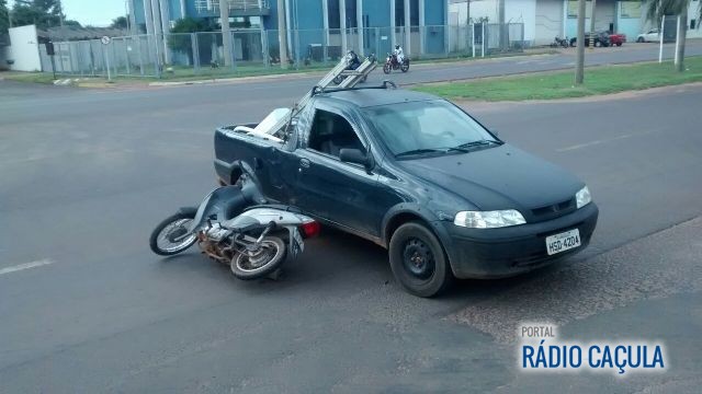 Batida envolveu um veículo Fiat Strada e uma motocicleta, no Bairro Jardim Alvorada.
