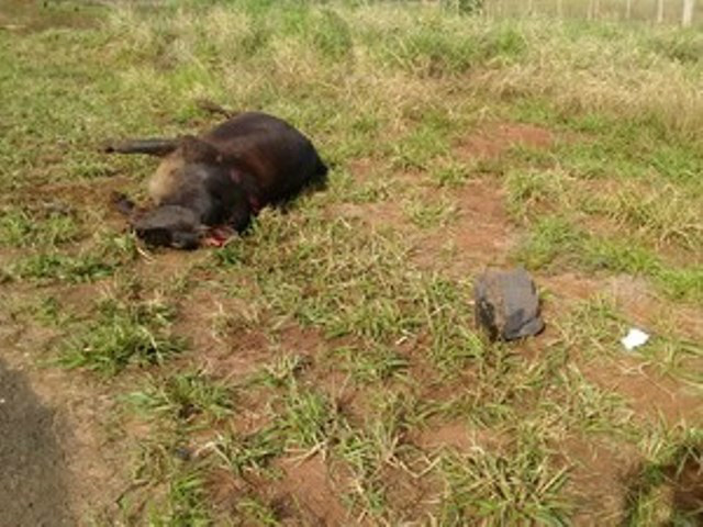 A polícia suspeita que o animal tenha fugido de uma propriedade rural, que fica às margens da rodovia. O corpo da vaca foi retirado da pista e colocado no acostamento. O dono do animal não foi localizado.