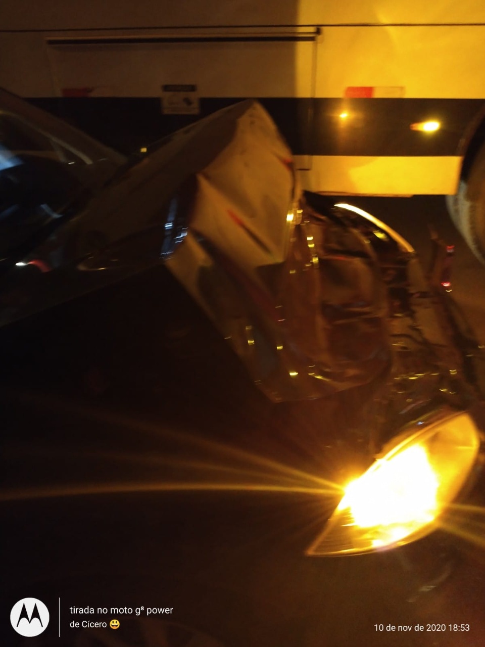 A frente do automóvel ficou parcialmente destruída. Por sorte, ninguém ficou ferido. Como não houve vítimas, a Polícia Militar orientou as partes a registrarem um boletim de ocorrência on-line para as devidas providencias.