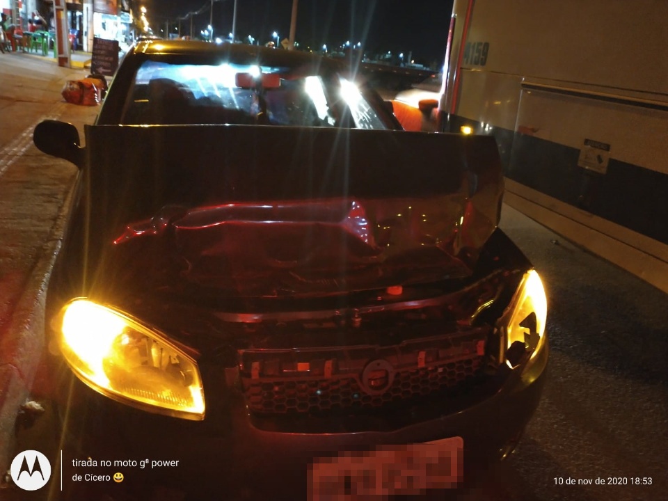 Devido a colisão, a frente do automóvel ficou parcialmente destruída