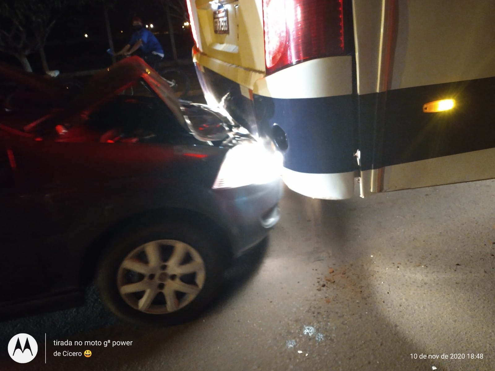 Carro bate na traseira de ônibus que estava parado em semáforo na região do Novo Oeste