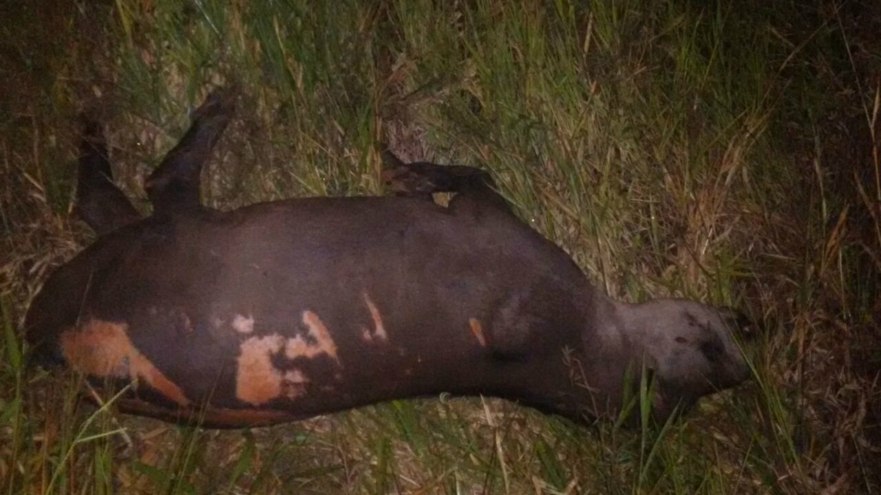 Uma equipe do Corpo de Bombeiros, foi acionada por volta das 20h desta segunda-feira (24) para atender um acidente próximo a uma fábrica de celulose, na MS 112 Km 13, onde um carro capotou após atropelar uma anta.