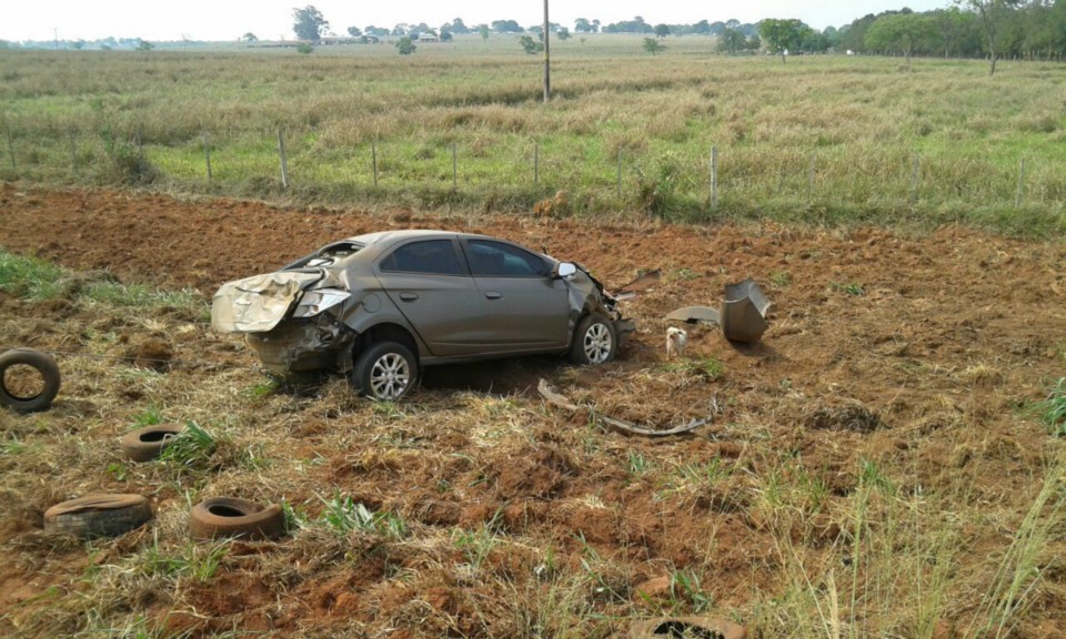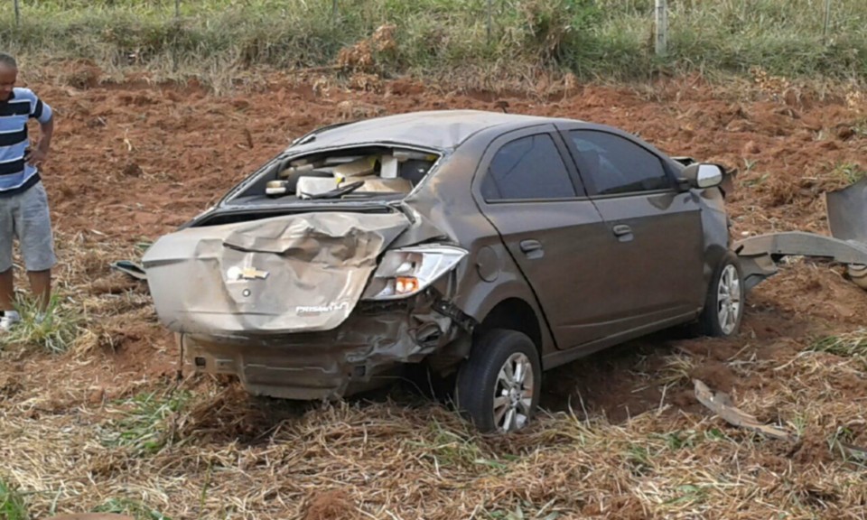 Enquanto os polícias faziam a abordagem no Corsa, a equipe da PRF recebeu a notícia de que um veículo Prisma havia capotado nas proximidades.