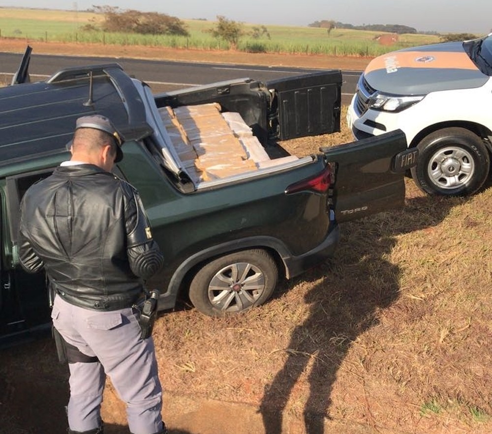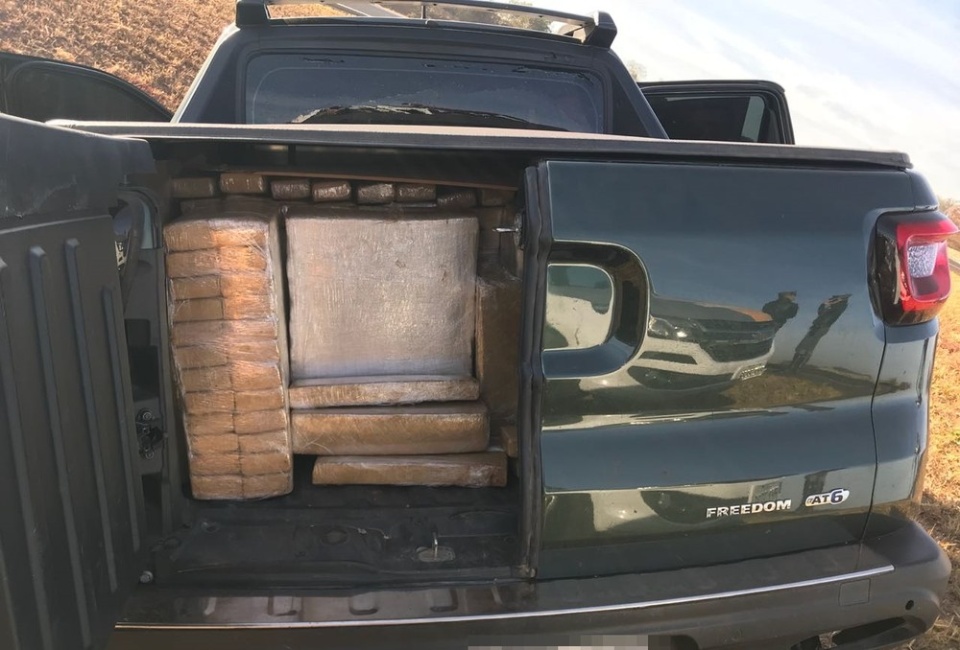 A polícia encontrou tijolos da droga no banco de trás e na carroceria do veículo. O suspeito disse que pegou a maconha em Três Lagoas (MS), mas não contou qual era seu destino.