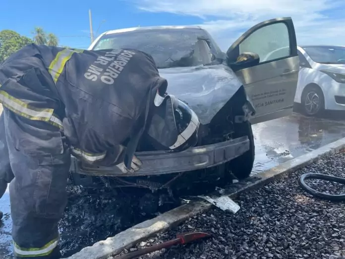 Um carro da Vigilância Sanitária pegou fogo na manhã desta sexta-feira, por volta das 10h15 na Avenida Rosário Congro, no centro de Três Lagoas.