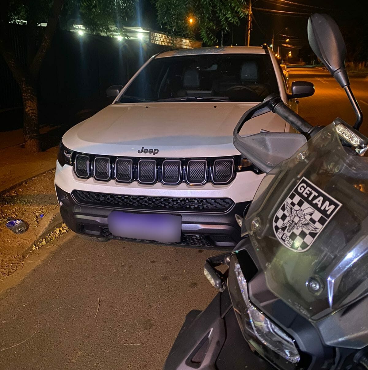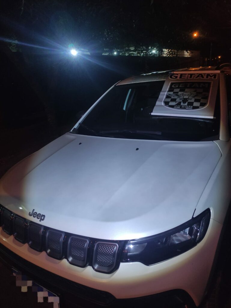 Durante checagem nos sistemas criminais, o veículo, modelo Jeep Compass branco, com placa de Campo Grande (MS) possuía queixa de furto em seu desfavor. Uma outra pessoa, que se identificou como responsável pelo automóvel e não quis dizer quem teria lhe mandado ali, chegou na casa e revelou onde estava a chave do carro – em cima de uma máquina de lavar, sendo possível ter acesso ao chassi, confirmando a queixa de ser um produto furtado, além de ser encontrado um rádio transceptor.