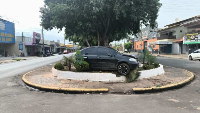 Carro “estacionado” em canteiro chama a atenção no centro de Três Lagoas