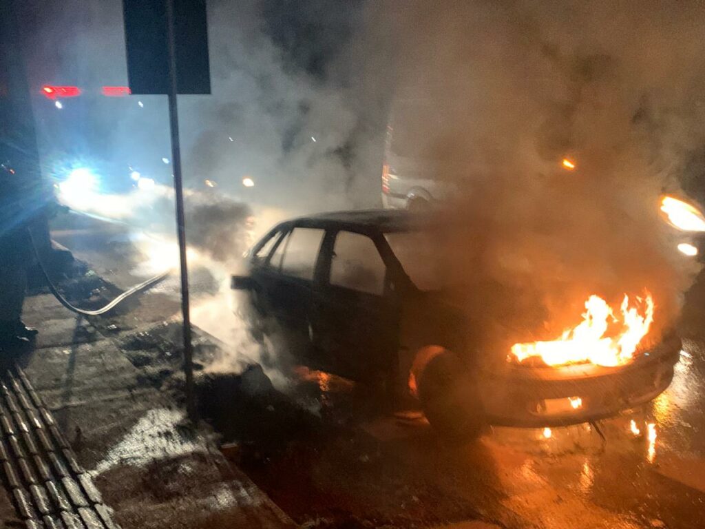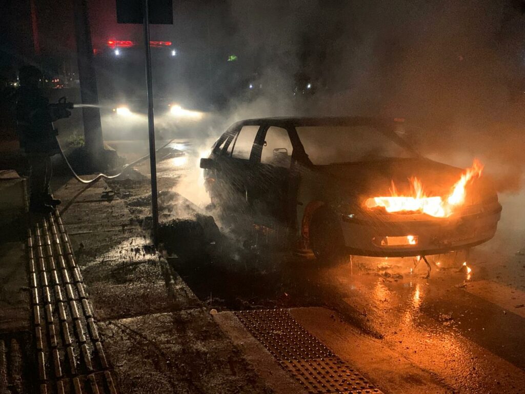 A equipe foi acionada por volta das 19h50 na Av. Custódio Andries para extinguir as chamas em um carro WV Gol branco, que ficou completamente destruído após o combate total do fogo pelos brigadistas.