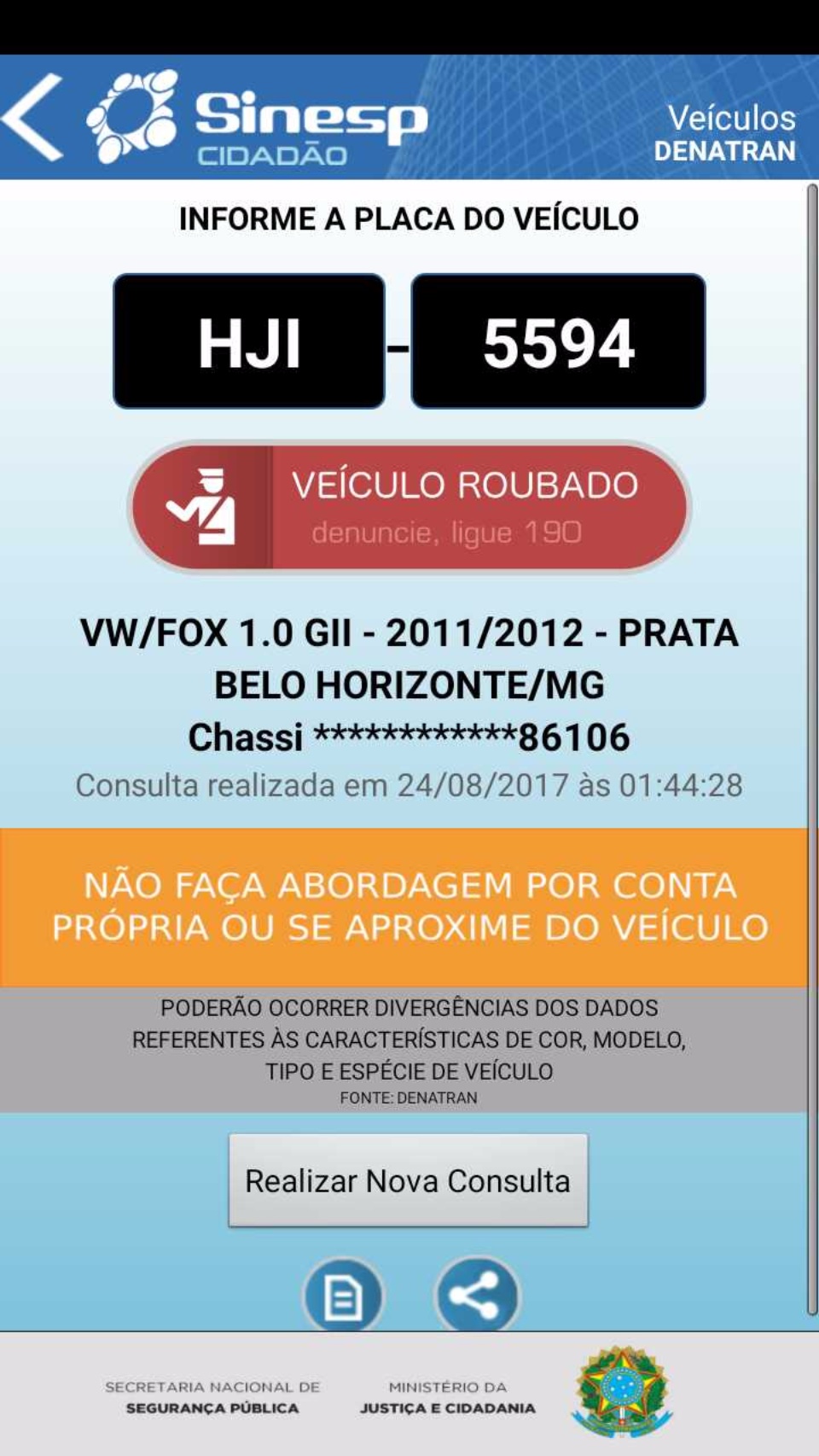 Conforme ocorrência policial, o motorista recebeu ordem de parada e durante averiguação do automóvel os oficiais notaram que o carro tinha características de dublê. Foi realizada consulta dos sinais de identificação e os policiais constataram que o veículo era produto de crime.