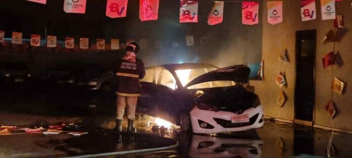 Um veículo HB-20 pegou fogo na noite desta quarta-feira (24) em uma garagem em Dourados, localizada na avenida Hayel Bom Faker, entre as ruas João Damasceno Pires e João Carneiro. O proprietário do estabelecimento foi surpreendido pelo alarme e acionou o Corpo de Bombeiros.
