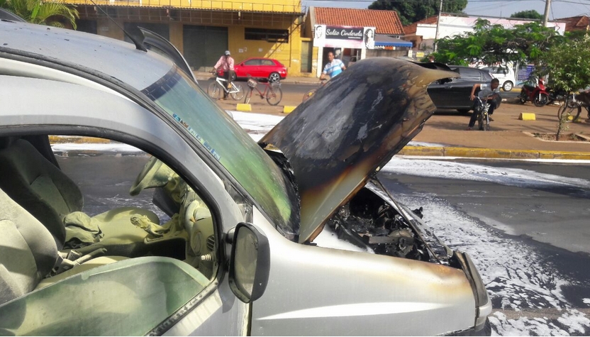 Carro pega fogo em avenida e complica trânsito na área central
