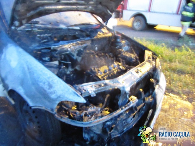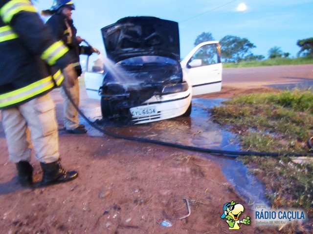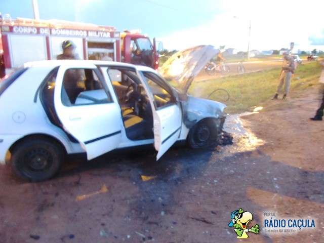 Logo após comprar um Fiat Palio e seguir pela rodovia do Balneário Municipal, Alexandro Antônio dos Santos (29) foi surpreendido quando viu sair fogo do capô. O Corpo de Bombeiros foi acionado para combater o incêndio que consumia o veículo.