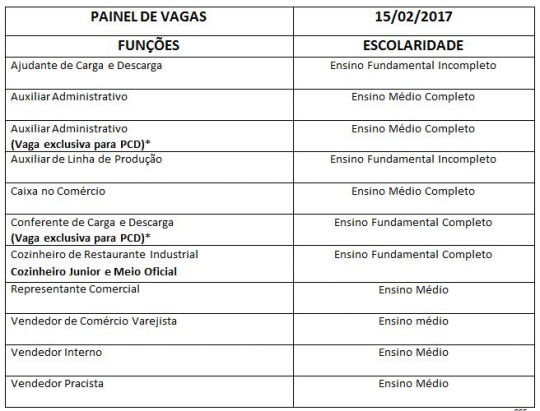 A Casa do Trabalhador de Três Lagoas localizada na Rua Munir Thomé n°86, na área central da cidade, em parceria com a FUNTRAB – Fundação do Trabalho de Mato Grosso do Sul divulga o quadro de vagas disponíveis para esta quarta-feira (15).