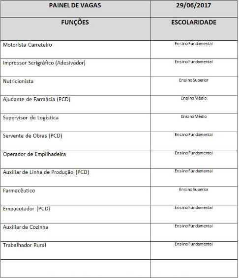 A Casa do Trabalhador de Três Lagoas localizada na Rua Munir Thomé n°86, na área central da cidade, em parceria com a FUNTRAB – Fundação do Trabalho de Mato Grosso do Sul divulga o quadro de vagas disponíveis para esta quinta-feira (29).