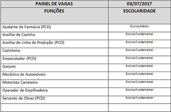 A Casa do Trabalhador de Três Lagoas localizada na Rua Munir Thomé n°86, na área central da cidade, em parceria com a FUNTRAB – Fundação do Trabalho de Mato Grosso do Sul divulga o quadro de vagas disponíveis para esta segunda-feira (03).