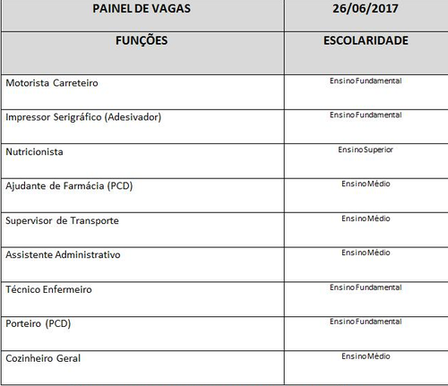 A Casa do Trabalhador de Três Lagoas localizada na Rua Munir Thomé n°86, na área central da cidade, em parceria com a FUNTRAB – Fundação do Trabalho de Mato Grosso do Sul divulga o quadro de vagas disponíveis para esta segunda-feira (26).