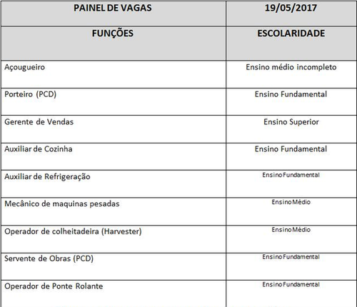A Casa do Trabalhador de Três Lagoas localizada na Rua Munir Thomé n°86, na área central da cidade, em parceria com a FUNTRAB – Fundação do Trabalho de Mato Grosso do Sul divulga o quadro de vagas disponíveis para esta sexta-feira (19).