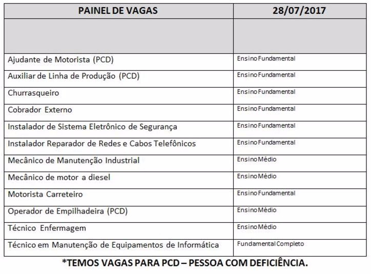 A Casa do Trabalhador de Três Lagoas localizada na Rua Munir Thomé n°86, na área central da cidade, em parceria com a Funtrab – Fundação do Trabalho de Mato Grosso do Sul divulga o quadro de vagas disponíveis para esta sexta-feira (28).